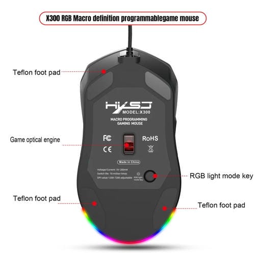 - Resolución de hasta 7200 DPI, 6 teclas programables, Botón de modo de luz, Cable trenzado de 1,5 m con anillo magnético, tasa de muestreo de 7000 FPS, vida útil de 10 millones de clics, voltaje DC 5V/180mA
