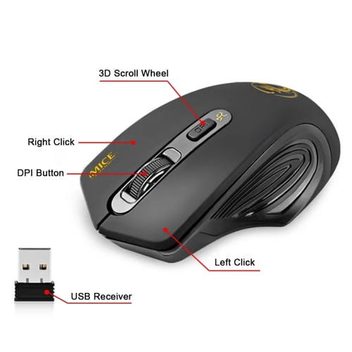 Ratón Óptico Imice 2.4Ghz 2000Dpi con Receptor USB 3.0 Ajustable para Computadora