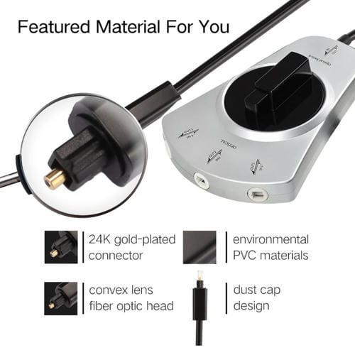 • 1x Interruptor de Salida 3 en 1 Manual para Fibra Óptica de Audio Digital con Cable (Negro)