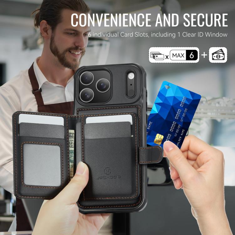 4. El práctico tarjetero cuenta con 1 marco de fotos, 3 ranuras para tarjetas y 2 ranuras para billetera, lo que facilita su uso.