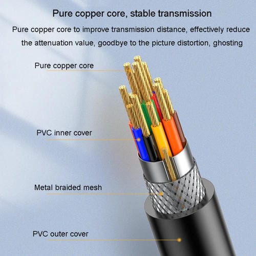 El Cable de Conexión de Pantalla VGA 3+6 Jinghua es un accesorio diseñado para la transmisión de Señal de video entre dispositivos con interfaz VGA, como monitores de Computadora, proyectores y ordenadores Portátiles. Este Cable de 3 metros de longitud, en color Negro, ofrece una Conexión estable y de alta definición con Soporte para resolución HD 1080P, permitiendo una reproducción fiel del color y una imagen nítida. Su construcción incluye un núcleo de alambre de cobre libre de oxígeno 3+6, doble blindaje y Conectores niquelados para garantizar durabilidad, resistencia a la oxidación y una transmisión sin interferencias, adecuada para entornos de trabajo y entretenimiento que requieren calidad visual y fiabilidad en la Señal.