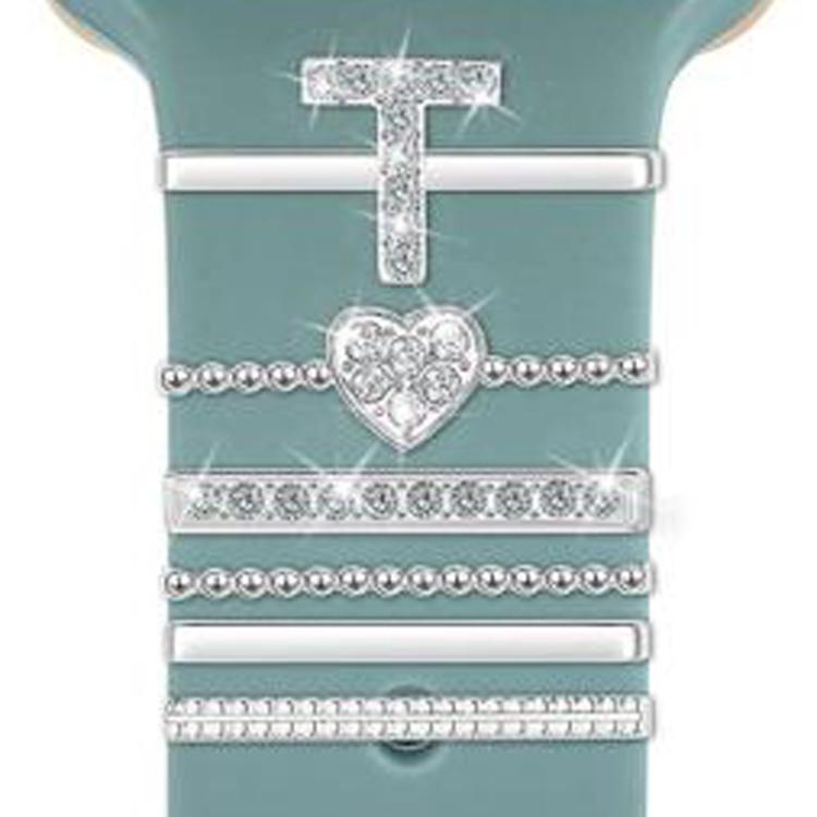 Juego de 6 correas de silicona universales para reloj inteligente, accesorios de metal decorativos, talla T (plateadas)