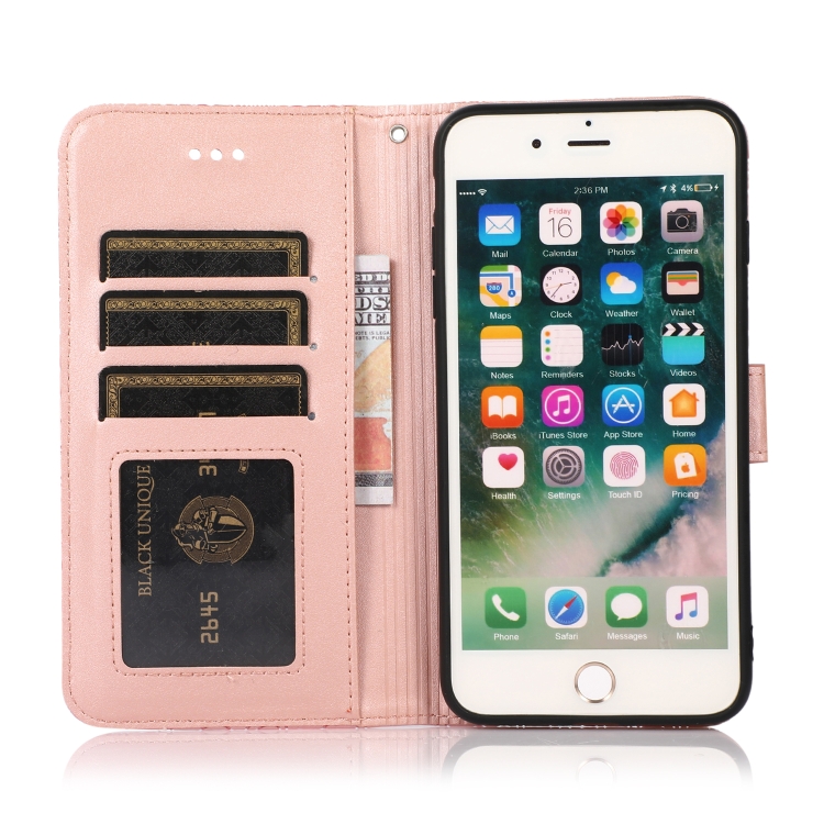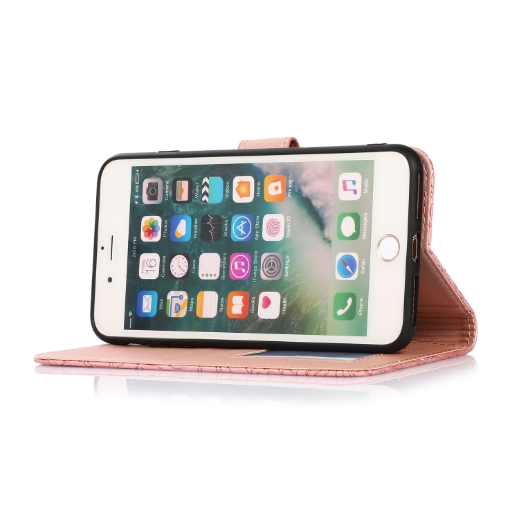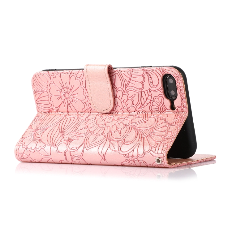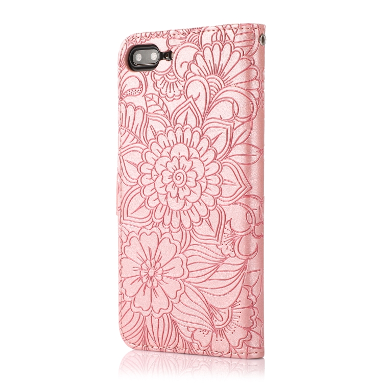 Funda de Cuero La Piel Se Siente Girasol En Relieve con Soporte y Ranuras para iPhone 7 Plus / 8 Plus (Oro Rosa)