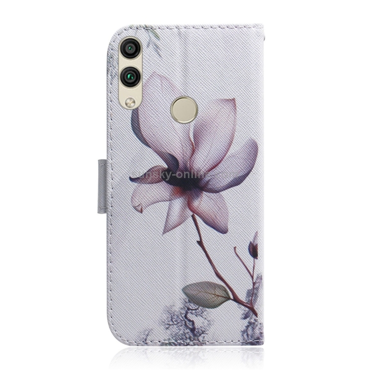 Funda de Cuero con Tapa Horizontal Huawei Honor 8C Magnolia Flower Pattern con Soporte y Ranuras para Tarjetas