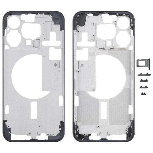 Este conjunto de Marco Central, Teclas Laterales y Bandeja para Tarjetas está diseñado específicamente para el Apple iPhone 15 Pro Max (Versión CE/UE), en color Azul. Se trata de un componente estructural esencial que permite reemplazar el chasis central del dispositivo, incluyendo los botones laterales (encendido, volumen y silencio) y la bandeja SIM. Su función principal es restaurar la integridad física del teléfono en caso de daños por caídas, desgaste o mal funcionamiento de los botones. Compatible exclusivamente con el modelo iPhone 15 Pro Max, esta pieza es ideal para técnicos o usuarios avanzados que buscan una reparación precisa y profesional.