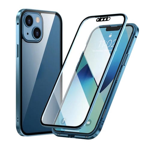 Marco de Metal Magnético Funda Telefónica Vidrio Templado Doble Cara iPhone 13 Mini (Sierra Azul)