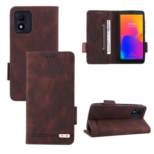 Funda de Cuero para Alcatel 1B 2022 con Cierre Magnético (Marrón)
