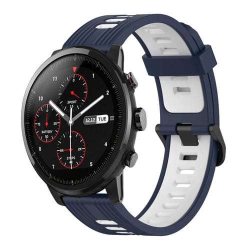 Correa de Reloj Amazfit 2 Stratos 22mm Silicona Dos Colores (Azul Oscuro + Blanco)