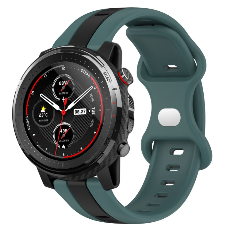 Correa de Reloj Amazfit 3 22mm Silicona Dos Colores con Hebilla de Mariposa (Verde + Negro)