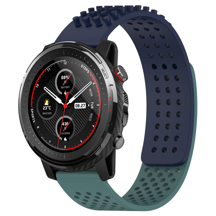 Correa de Reloj silicona para Amazfit 3 con puntos 3D transpirables y orificios 22mm (Azul Medianoche + Verde Oliva)