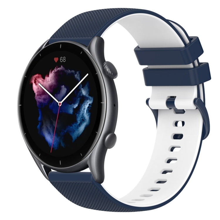 Correa de Reloj para Amazfit 3 Silicona Dos Colores a Cuadros 22mm (Azul Oscuro + Blanco)