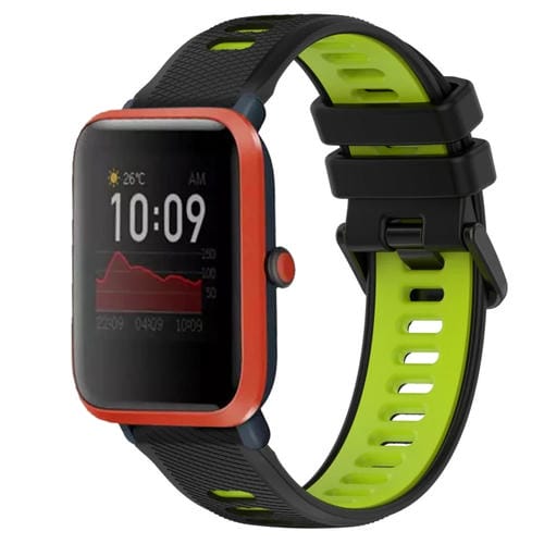 Pour Amazfit Bip 1S 20 mm Bracelet de montre en silicone bicolore sport (noir + vert)