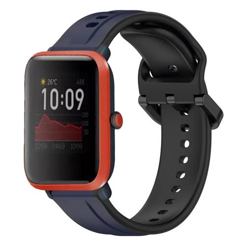 Correa de Reloj para Amazfit Bip 1S Silicona Dos Colores Bucle Convexo 20mm (Azul Medianoche + Negro)