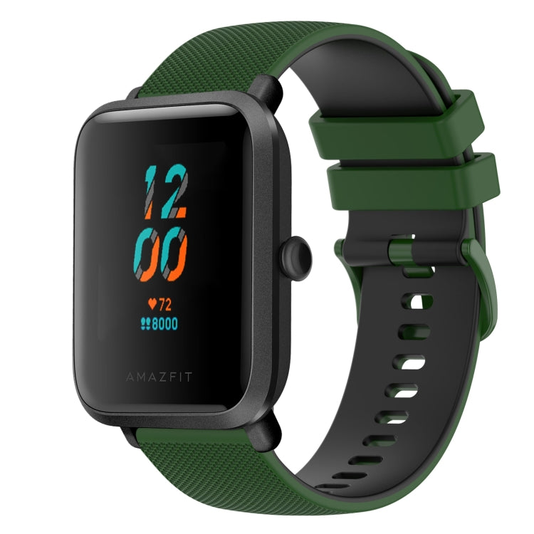 Correa de Reloj para Amazfit Bip 20mm Silicona Dos Colores a Cuadros (Amy Green + Black)