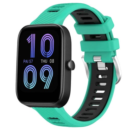 Correa de Reloj Amazfit Bip 3 22mm Silicona Textura Cruzada con Hebilla de Acero (Azul Lago + Negro)