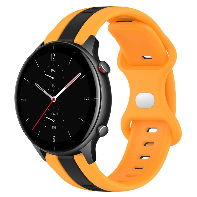 Para Amazfit Gtr 2E 22mm Hebilla de Mariposa Correa de Reloj de Silicona de Dos Colores (Negro + Amarillo)