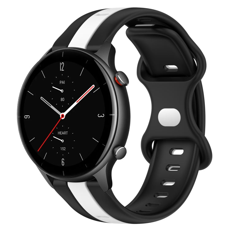 Correa de Silicona para Amazfit GTR 2E 22mm con Hebilla de Mariposa (Negro + Blanco)