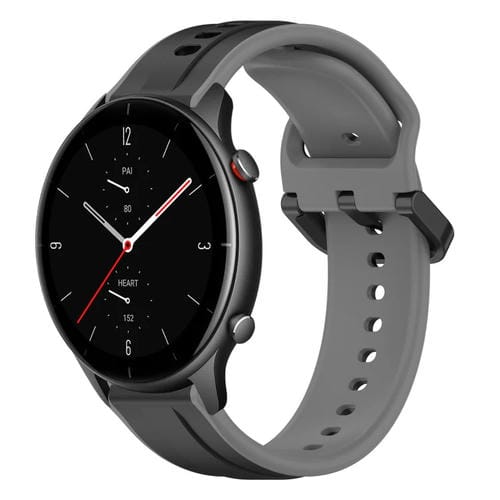 Correa de Reloj Silicona para Amazfit GTR 2E 22mm con Bucle Convexo (Negro + Gris)