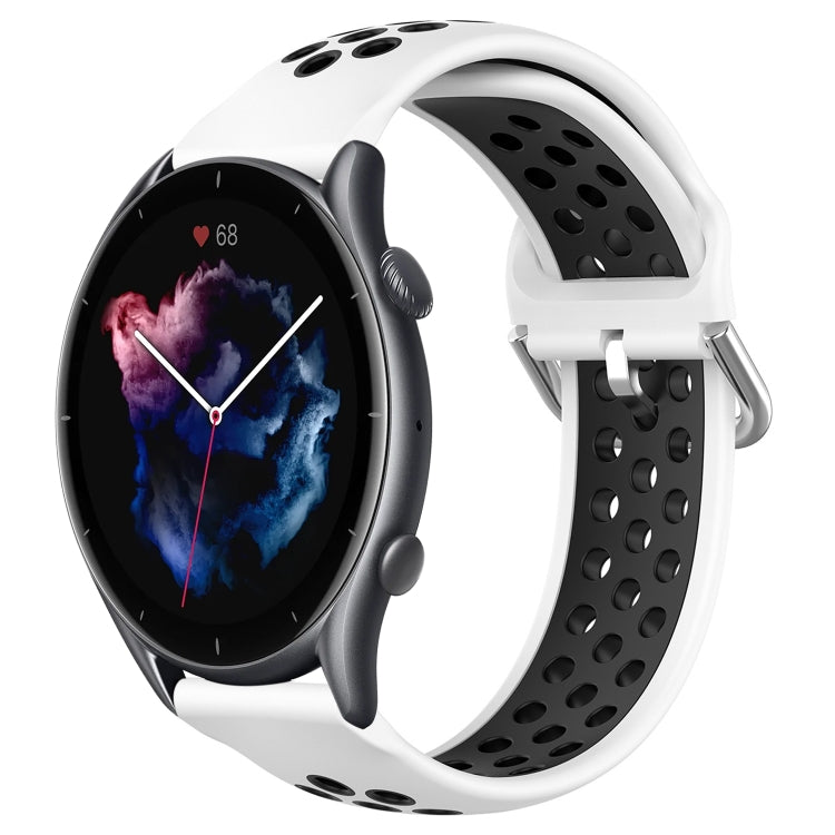 Correa de Reloj de Silicona Deportiva para Amazfit GTR 3 22mm Transpirable Perforada (Blanco + Negro)