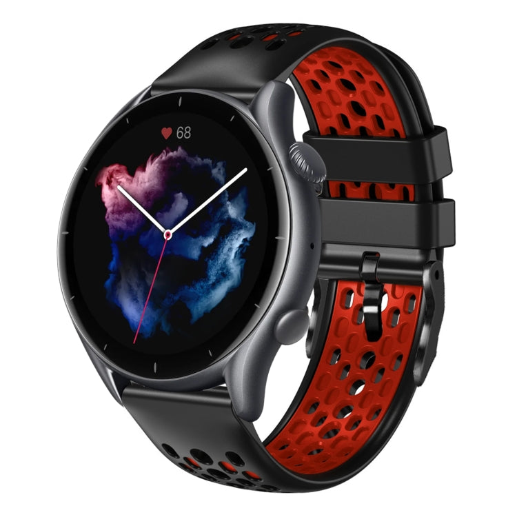 Correa de Silicona para Amazfit GTR 3 22mm Transpirable Dos Colores (Negro + Rojo)