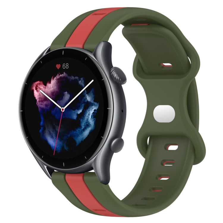 Correa de Reloj Amazfit GTR 3 22mm silicona dos colores hebilla de mariposa (Rojo + Verde Militar)