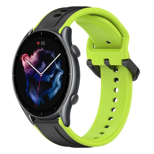 Correa de Silicona para Amazfit GTR 3 con Bucle Convexo 22mm (Negro + Lima)