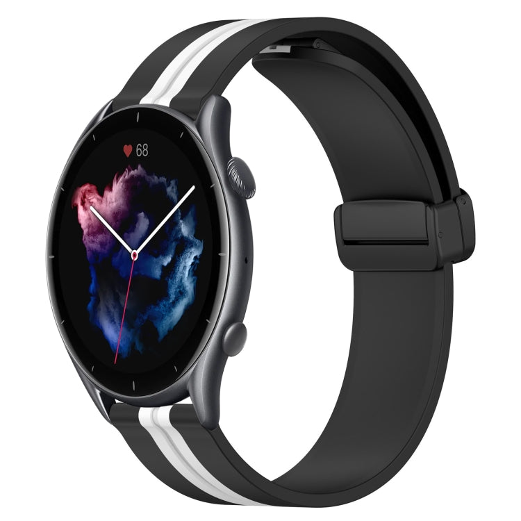 Pour bracelet de montre en silicone Amazfit GTR 3 Pro 22 mm avec fermoir magnétique pliant (noir + blanc)