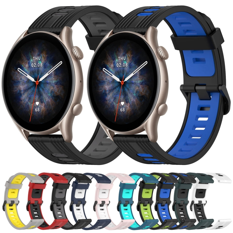 Correa de silicona para Amazfit GTR 3 Pro 22mm patrón vertical dos colores (Rosa + Blanco)
