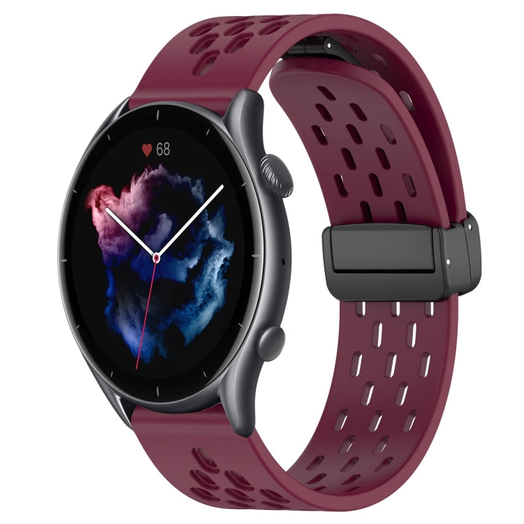 Pour bracelet de montre en silicone Amazfit GTR 3 Pro avec fermoir magnétique pliant 22 mm (bordeaux)
