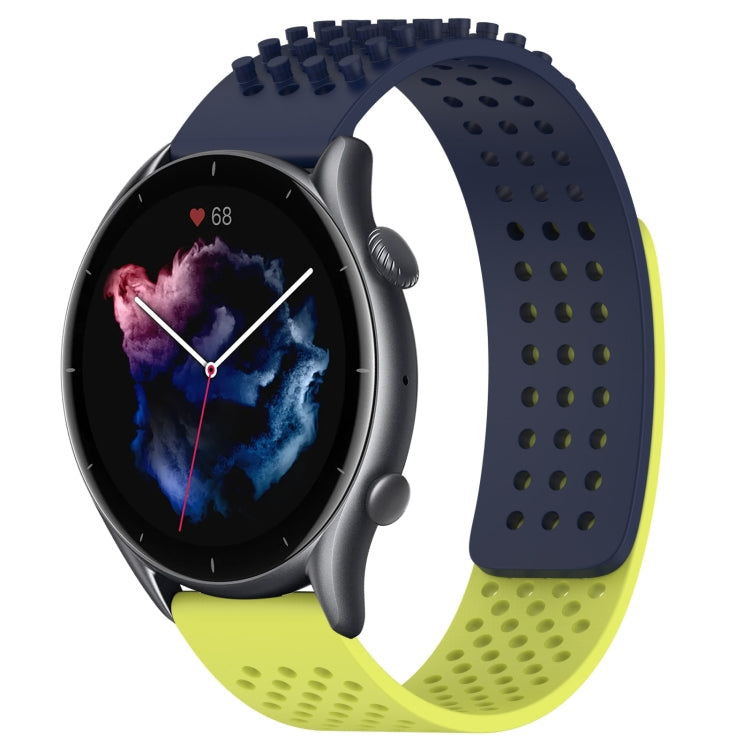 Correa de Silicona para Amazfit GTR 3 Pro con Puntos 3D Transpirables y Orificios 22mm (Azul Medianoche, Verde Lima)