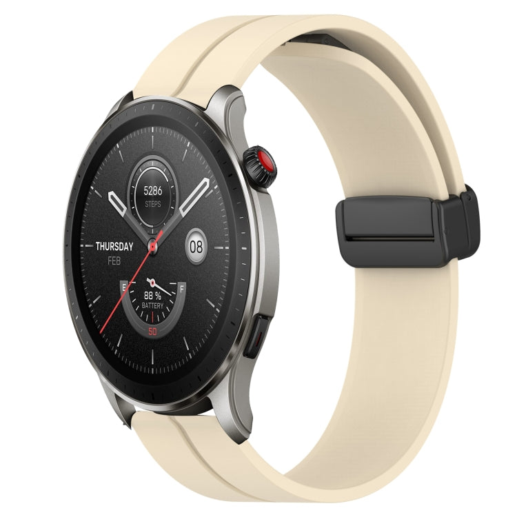 Pour Amazfit GTR 4 22 mm Bracelet de montre en silicone à fermoir magnétique de couleur unie (beige)