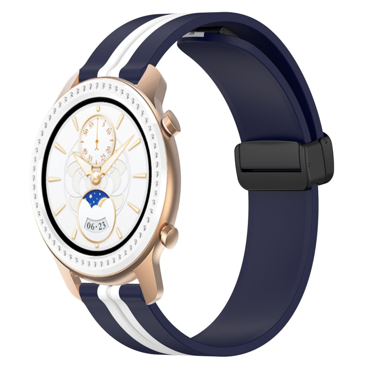 Correa de Silicona para Amazfit GTR 42mm 20mm con Cierre Magnético Plegable (Azul Medianoche + Blanco)