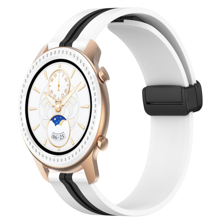 Pour bracelet de montre en silicone Amazfit GTR 42 mm 20 mm avec fermoir magnétique pliant (blanc + noir)