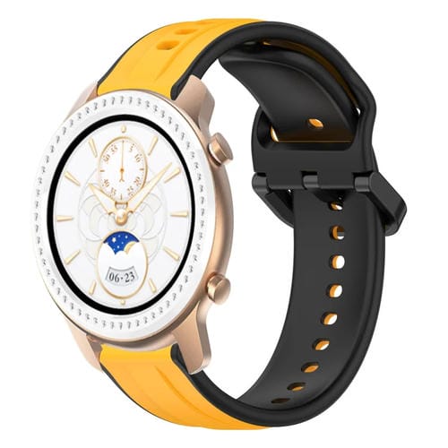 Correa de Reloj para Amazfit GTR 42mm 20mm Silicona Dos Colores con Bucle Convexo (Amarillo + Negro)
