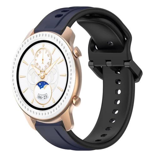 Correa de Silicona para Amazfit GTR 42mm 20mm Dos Colores con Bucle Convexo (Azul Medianoche + Negro)