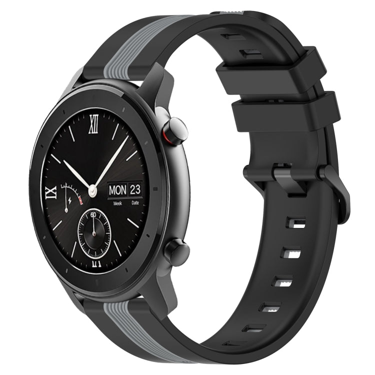 Correa de Silicona para Amazfit GTR 42mm 20mm Dos Colores Vertical (Negro + Gris)
