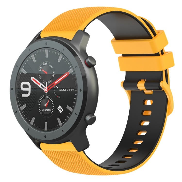 Correa de Reloj Silicona para Amazfit GTR 47mm 22mm Dos Colores a Cuadros (Amarillo + Negro)