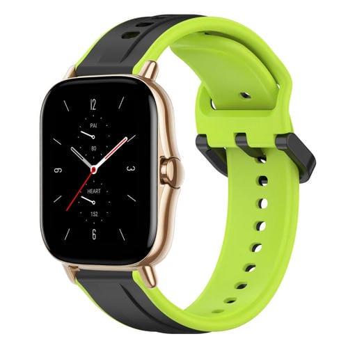 Correa de Silicona para Amazfit GTS 2 con Bucle Convexo de 20mm (Negro + Lima)
