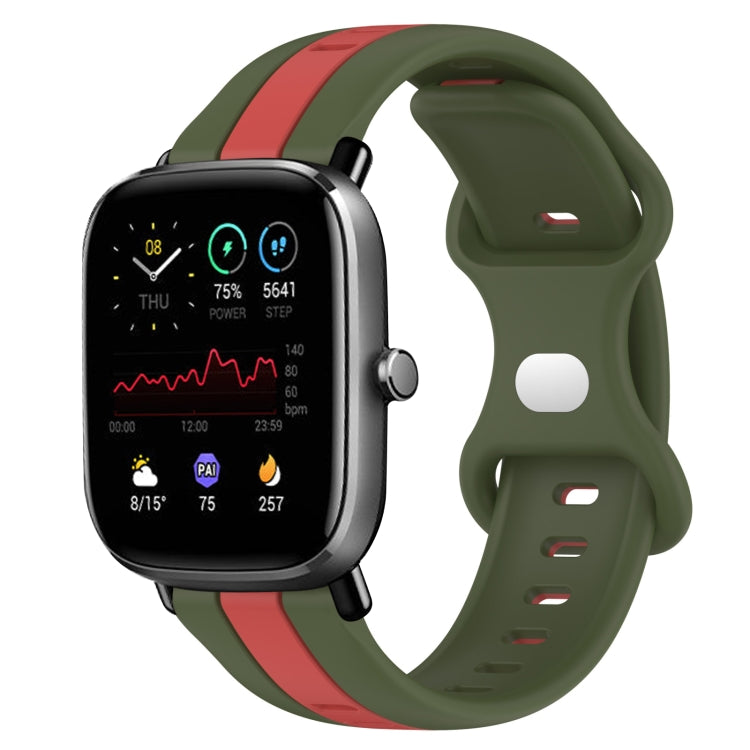 Correa de Silicona para Amazfit GTS 2 Mini 20mm con Hebilla de Mariposa (Rojo + Verde Militar)