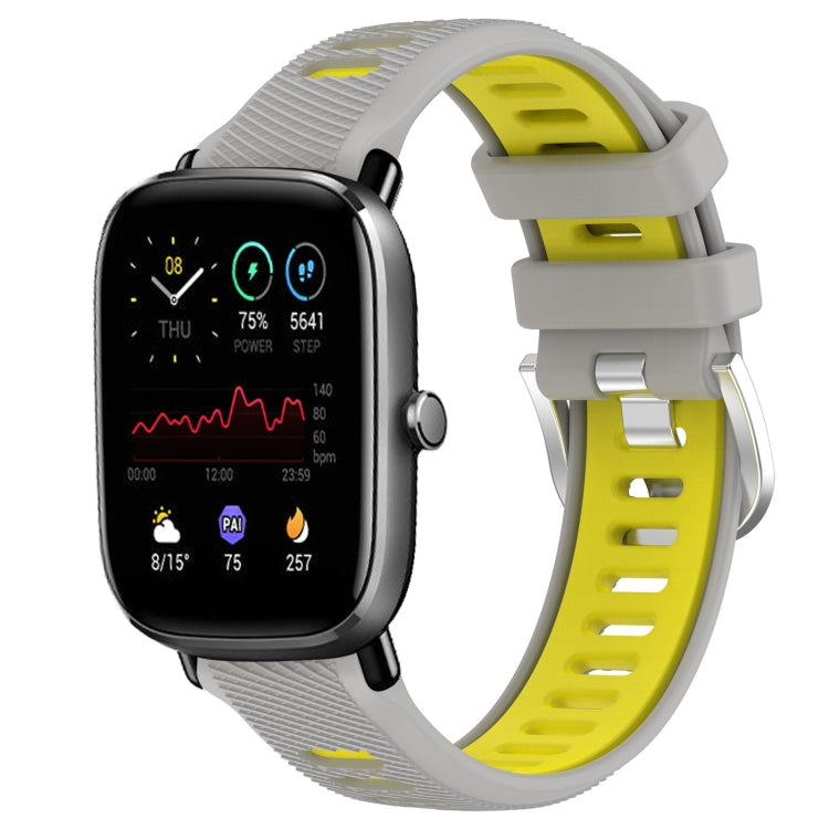 Correa de Reloj para Amazfit GTS 2 Mini 22mm Textura Cruzada Silicona con Hebilla de Acero (Gris + Amarillo)