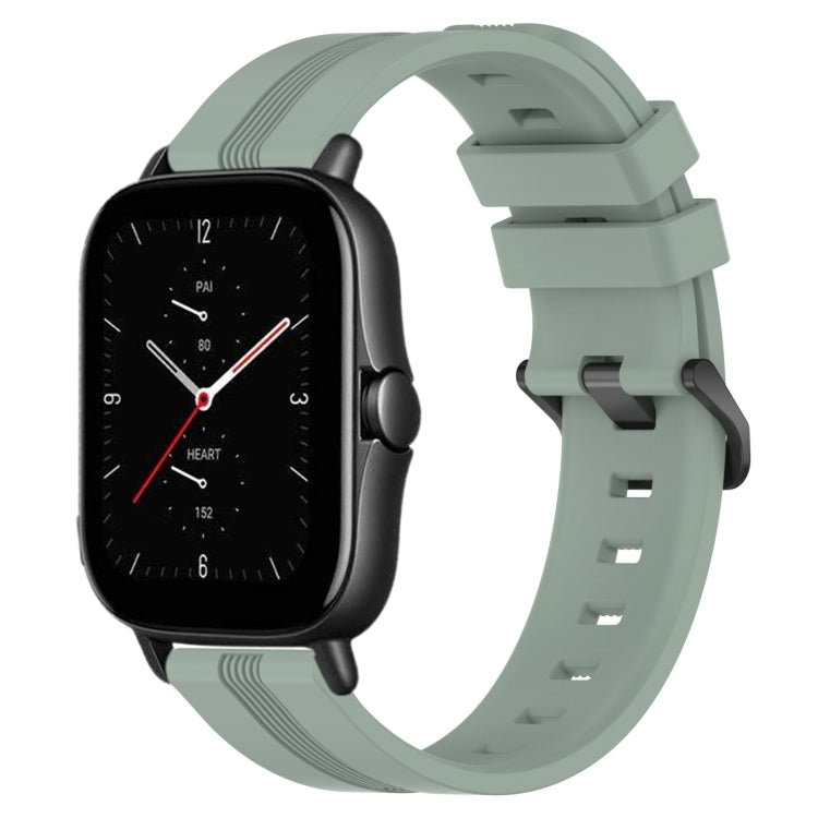 Correa de Reloj de Silicona para Amazfit GTS 2E 20mm con Rayas Cóncavas (Verde Grisáceo)
