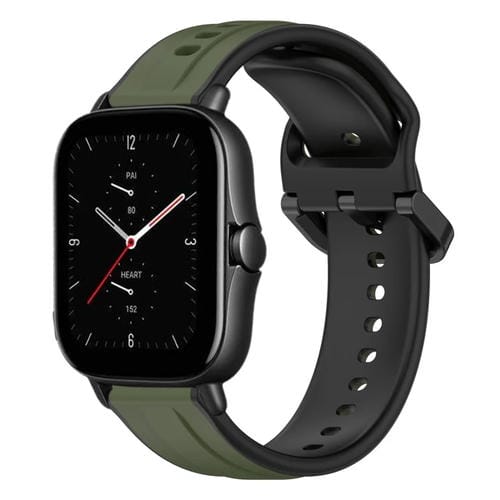 Correa de Silicona para Amazfit GTS 2E 20mm con Bucle Convexo (Verde Oscuro + Negro)