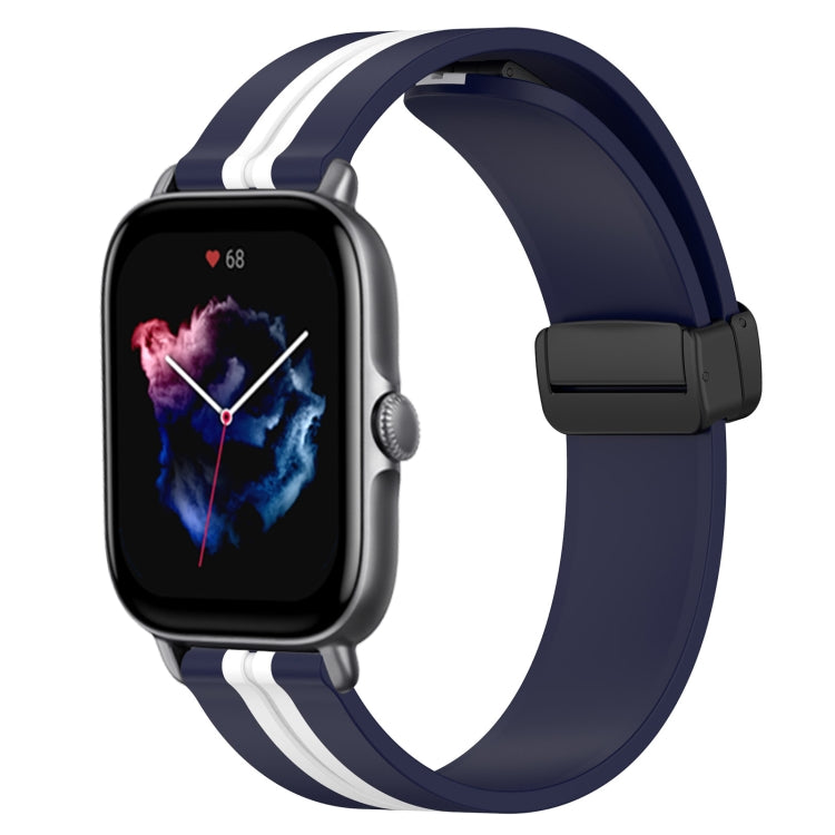 Pour bracelet de montre en silicone Amazfit GTS 3 20 mm avec fermoir magnétique pliant (bleu nuit + blanc)