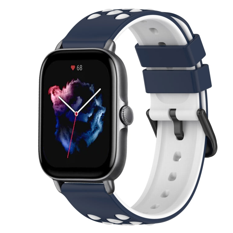 Correa de Reloj para Amazfit GTS 3 20mm Silicona Dos Colores (Azul Medianoche + Blanco)