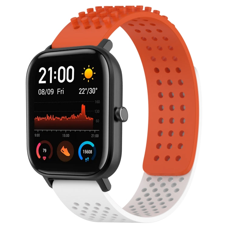 Correa de Silicona para Amazfit GTS con Puntos 3D Transpirables y Orificios 20mm (Naranja + Blanco)