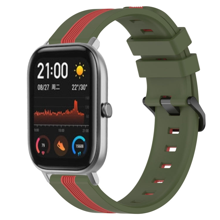 Correa de Reloj Amazfit GTS Silicona Dos Colores Vertical 20mm (Verde Militar + Rojo)