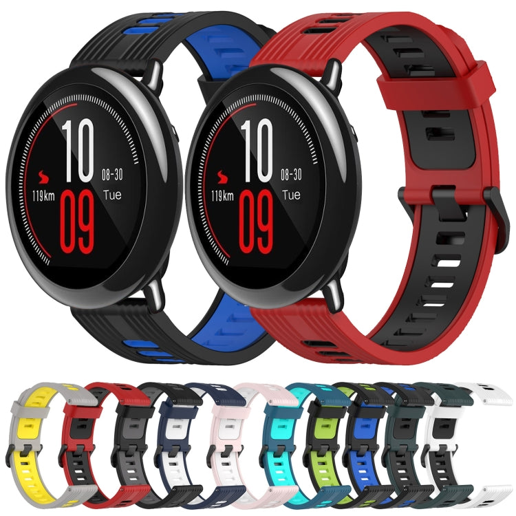 Correa de Reloj Amazfit Pace 22mm Silicona Patrón Vertical Dos Colores (Verde Oliva + Negro)