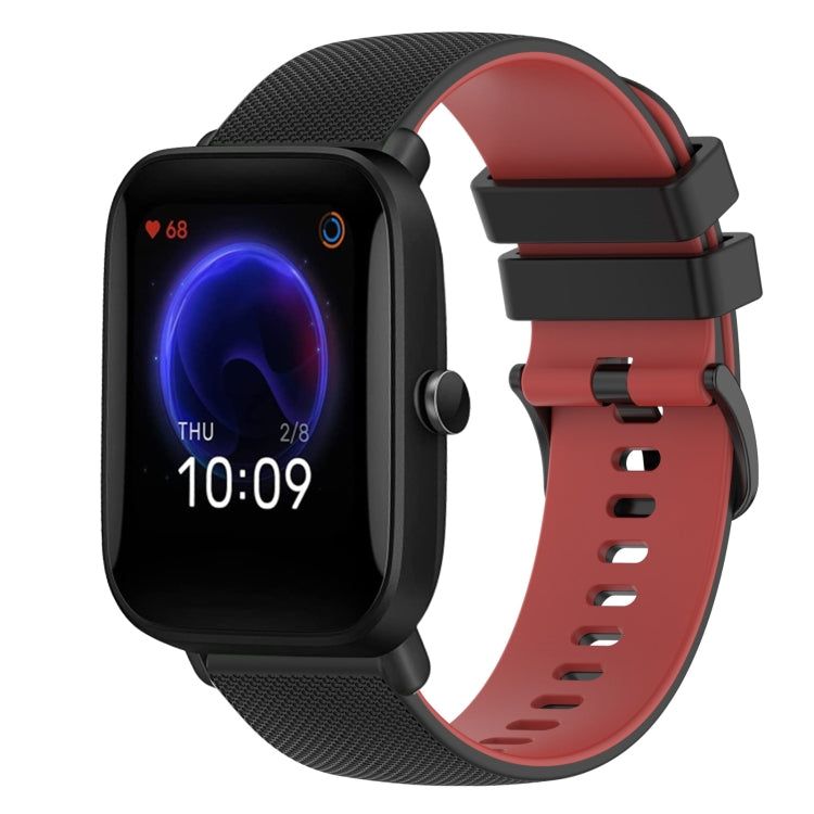 Correa de Reloj para Amazfit Pop 20mm Silicona Dos Colores a Cuadros (Negro + Rojo)