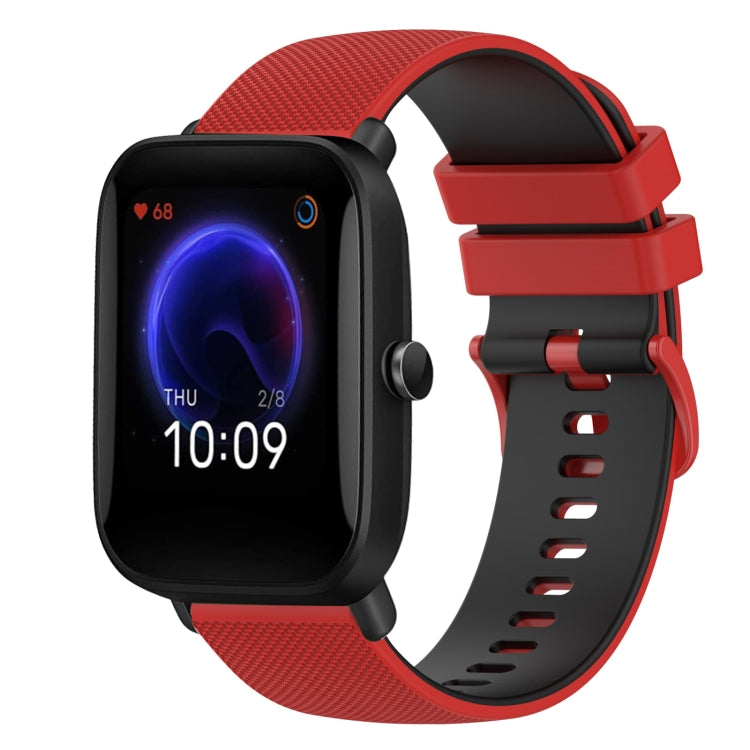 Correa de Reloj Amazfit Pop 20mm Silicona Dos Colores a Cuadros (Rojo + Negro)