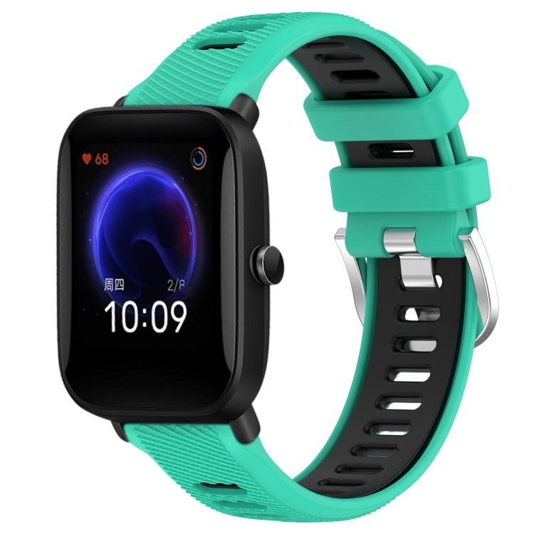 Correa de Reloj para Amazfit Pop 22mm Textura Cruzada Silicona Dos Colores (Azul Lago + Negro)